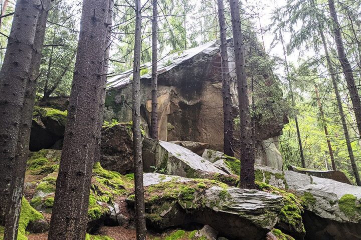 «Стежка Довбуша» поблизу Яремча розташовується на території Карпатського національного природного парку. Для туристів, що шукають цікавий але не надто довгий маршрут – це просто ідеальний варіант для мандрівки. Цей туристичний маршрут можна пройти приблизно за чотири години. Він бере свій початок в урочищі Дрібка, піднімається до скель, а звідти туристична стежка спускається донизу і замикається в кільце. Крокуючи стежкою, туристам продовж всього шляху, будуть траплятися тематичні кам’яні скульптури майстра Дарія Грабара. Також на маршруті стоять інформаційні стенди. Так як туристичний маршрут «Стежка Довбуша» утворює кільце, це не значить, що мандрівникам обов’язково спускатись до стартової точки. Можна завершити свою мандрівку біля водоспаду Пробій або сувенірного базару в Яремчі. Неподалік від автомобільної дороги можна побачити оповитий легендами Камінь Довбуша. При підйомі стежиною ви натрапите на місцеві Скелі Довбуша ( не варто плутати зі Скелями Довбуша, що поблизу Бубнище). Саме в цій місцині переховувались загони Олекси Довбуша від польських підрозділів. З оглядових майданчиків біля скель, відкривається неповторний краєвид на Карпати, від цієї краси просто перехоплює подих. Для туристів, що бажають продовжити прогулянку, можна піднятись на гору Маковицю. Стежку до гори можна знайти за допомогою дороговказу, що стоїть неподалік від скель.