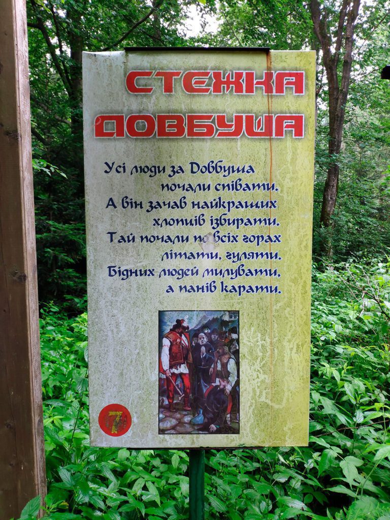 Прогулюючись «Стежкою Довбуша» ви отримаєте заряд позитивних емоцій та почуєте багато інформації про діяння гуцульського Робін Гуда Олексу Довбуша. Маршрут стартує в Яремчі на вулиці Свободи. При дорозі стоїть великий дерев’яний дороговказ. Вхід на територію художньо-пізнавального комплексу платний.