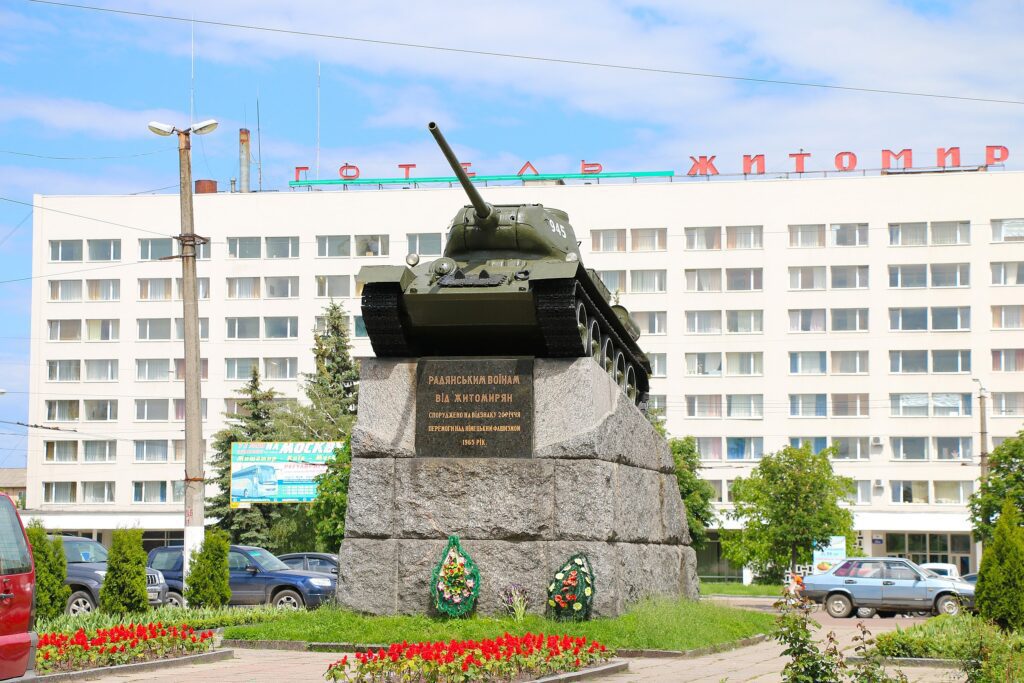 Танк Т-34-85, встановлений на площі Перемоги в Житомирі, був символом військової слави та пам’ятником на честь визволення міста від нацистських загарбників. Його встановили у 1965 році до 20-річчя перемоги у Другій світовій війні.