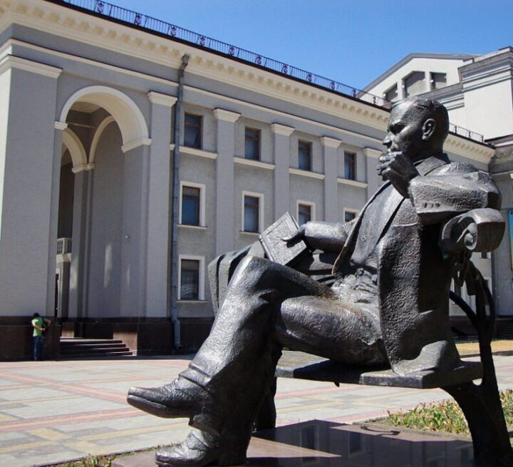 В 1945 році на Театральній площі був встановлений пам’ятник Йосипу Сталіну, який був підірваний українськими повстанцями в новорічну ніч з 1946 на 1947 року. Більшовикам довелося перевезти з Будинку офіцерів новий пам’ятник, щоб на ранок нового року встигнути встановити його на попередньому місці.