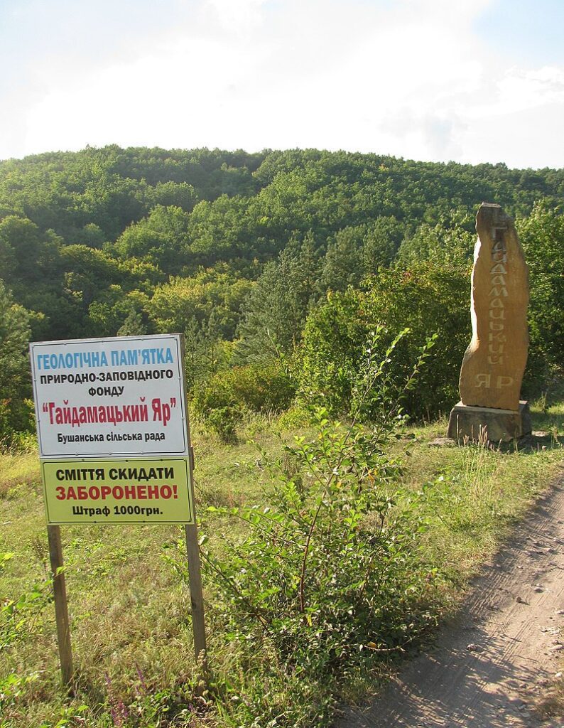 В Вінницькій області неподалік села Буша розташувався Гайдамацький яр. Він простягається вздовж долини Бушанки, притоки річки Мурафи на два кілометри. Спираючись на перекази, у 18 столітті саме у цій місцевості переховувались гайдамаки разом зі свої провідником Іваном Гонтою.