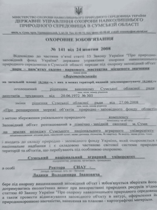 У Сумах знаходиться столітній парк – Веретенівський. Цей старий парк наразі знаходиться у власності Сумського сільськогосподарського технікуму, що підпорядковується Сумському державному аграрному університету. На території понад 17 гектарів росте багато дерев, вік яких перевалив за сотню. Тут можна помилуватися столітніми соснами та ялинами, для обхвату їх стовбуру знадобиться 5- 6 людей. Територією парку протікає річка Попадько, що впадає в річку Сумку.