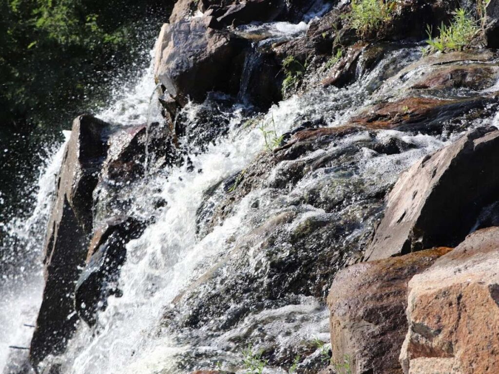 З самого острова не видно водоспад Ревучий, але чутно як ревуть його могутні потоки води. Для містян і гостей міста обладнано верхній оглядовий майданчик на набережній, де встановлено лавки, що дозволяє в повному обсязі помилуватися красою водоспаду та скелями острова.