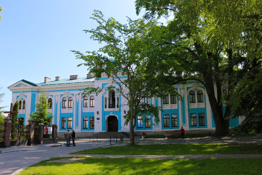 В Житомирі у старовинній історичній будівлі розташований Краєзнавчий музей. В цьому будинку, понад 150 років тому, жив єпископ католицької церкви. З тих років будівля майже не змінилась. Тут і досі зберігся яскраво синій колір фасаду, тільки біля входу вже не стоять гармати. В музеї зберігається велика колекція картин світових художників, а також коштовного каміння та мінералів.