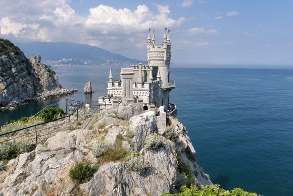 В Українському Криму у невеличкому південному містечку Гаспра, на 40-метровій скелі Аврора розташована перлина півострова – замок «Ластівчине гніздо». З замку відкривається неповторна панорама на безкрайні простори Чорного моря, Ялтинську затоку та казкову Ведьмідь-гору.